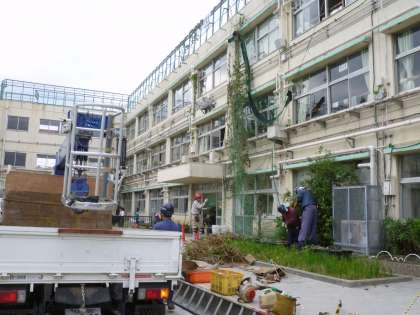 夏の教室の窓には、柔らかな緑のカーテンが涼しさを届けてくれました。緑色の葉を通して差し込んでくる日差しは、心も和ませてくれました。