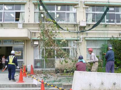今日、業者さんが来て緑のカーテンを外しました。屋上まで伸びたへちまの生命力には驚きましたが、おかげさまでずいぶんと役に立ちました。