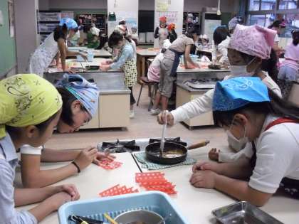 金曜日の7校時目はクラブ活動です。運動部・文化部合わせて18のクラブが開設され、4年生上の子どもたちが活動しています。伝承遊びクラブでは「コマ回し大会」、ボードゲームクラブでは「将棋大会」、料理クラブでは「生キャラメルづくり」が行われていました。クラブですので、子どもたちの興味・関心が高いものとはいえ、とっても楽しそうでした。