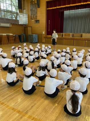 先週・今週と、1年生はいろいろなことを学習しました。国語や算数などの学習はもちろん、朝や帰りの仕度、給食の準備の仕方、下校の仕方など、本当にたくさんのことを、みんな楽しみながらどんどん吸収していきました。体育の学習では、整列の仕方を練習した後、みんなで体ほぐしの運動遊びを行いました。発育測定では、測定のほかに、学校でけがをしたり具合が悪くなったりした時にどうすればよいのかということや、保健室の使い方などを教えてもらいました。来週も元気に登校してくださいね!