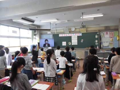 入学してから約1ヶ月。毎週月曜日の全校朝会でも、とても姿勢良くあいさつをしたり、礼をしたりすることができるようになりました。もう立派な小学1年生です。