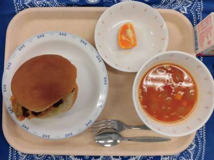 5/24 本日の給食 公開日 2022/05/25 更新日 2022/05/25 給食 〜今日の献立〜 セルフフィッシュサンド 牛乳 ミネストローネ くだもの(南津海) 〜給食メモ〜 今日のスープは、「ミネストローネ」です。そこで今日は、「ミネストローネ」のクイズを出したいと思います。ミネストローネは、どこの国の料理でしょうか? 1. アメリカ 2. イタリア 3. フランス ※クイズのこたえは、「食材がとれたところ…」の最後にのせています。 食材がとれたところ・・・ 閉じる 食材がとれたところ… ほき…ニュージーランド じゃがいも…鹿児島県 白いんげん豆…北海道 キャベツ…茨城県 にんにく…青森県 セロリー…静岡県 たまねぎ…香川県 南津海…佐賀県 クイズのこたえは、2の「イタリア」です。ミネストローネは、トマトを使ったスープで、イタリアの家庭料理です。栄養たっぷりのトマトは、体を元気にしてくれて、夏バテも予防してくれます。残さず食べましょう。