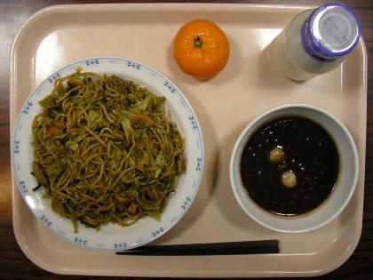 1/9 本日の給食 公開日 2009/01/09 更新日 2009/01/09 給食 1月11日は鏡開きです。この日はお正月に供えた鏡餅を雑煮やしる粉にして食べます。1月11日は今年は日曜日で学校はお休みです。そこで、すこし早いですが、今日の給食に「おしる粉」がでました。今日の献立「ソース焼きそば・おしる粉・牛乳・みかん」です。
