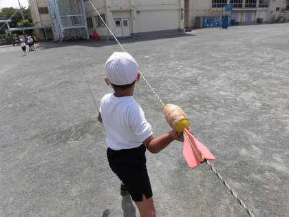 本日の体育の授業では、今月予定されているスポーツテストに向けて、ソフトボール投げの練習をしました(ボールを使っての練習の前に、今日は何を使って練習したのかというと・・・?)。