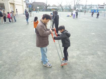 1/10 昔遊びのふれあい広場 その1 公開日 2009/01/10 更新日 2009/01/10 校長室より 今日は、新年初めてのふれあい広場です。毎年昔の遊び会を開催していますが、今年もこま、竹馬、羽根つき、折り紙、けんだま等たくさんの遊びをしました。 竹馬は古くなったのを新品に入れ替えましたから大人気です。けんだまができて大喜びのお母様の笑顔が子どもの頃に戻ったようでした。
