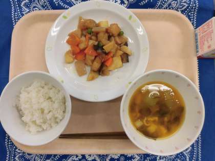 6/17 本日の給食 公開日 2022/06/17 更新日 2022/06/17 給食 〜今日の献立〜 ごはん 牛乳 揚げ煮 冬瓜のみそ汁 〜給食メモ〜 今日のみそ汁には、「冬瓜」という野菜を使いました。丸くて大きな野菜で、「冬」に「瓜」と書いて「とうがん」と読みます。そこでクイズです。冬瓜の旬(たくさんとれて、おいしい時期)は、いつでしょうか? 1. 春 2. 夏 3. 秋 4. 冬 ※クイズのこたえは、「食材がとれたところ…」の最後にのせています。 食材がとれたところ・・・ 閉じる 食材がとれたところ… 米…埼玉県 ほき…ニュージーランド じゃがいも…鹿児島県 わかめ…熊本県 しょうが…高知県 にんじん…千葉県 たまねぎ…群馬県 冬瓜…愛知県 かぼちゃ…神奈川県 ねぎ…茨城県 クイズのこたえは、2の「夏」です。冬瓜は、夏の野菜ですが、長く保存することができ、冬まで食べることができるので、「冬」という字を使って、冬瓜と名前がつけられたそうです。旬の野菜はおいしく、栄養もいっぱいです。残さず食べましょう。