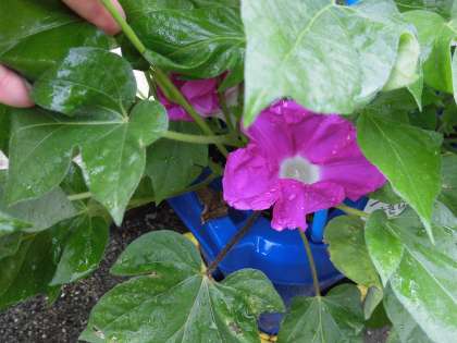 6/24 1年生 あさがお、咲きました!! 公開日 2022/06/24 更新日 2022/06/24 学年 1年生が生活科で育てているあさがお、今朝見たら…花が咲いていました!!よく見ると葉のかげにつぼみがいくつも…(真ん中の写真、つぼみ、わかりますか?)!嬉しいですね! まだ咲いている人は数人ですが、これからどんどん咲いていきますよ!1年生のみなさん、お楽しみに!
