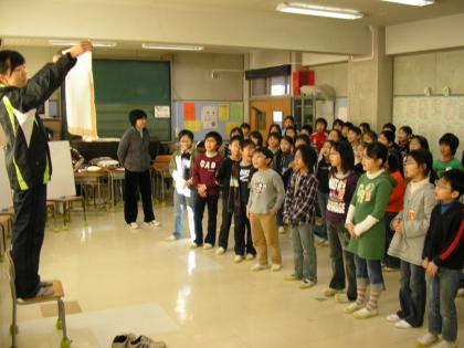3年の国語です。4,5組が合同で詩の群読に挑戦しました。2クラス60名以上の子どもたちが、初めて心を合わせて詩を読みました。初めてにしては上々のできばえでした。