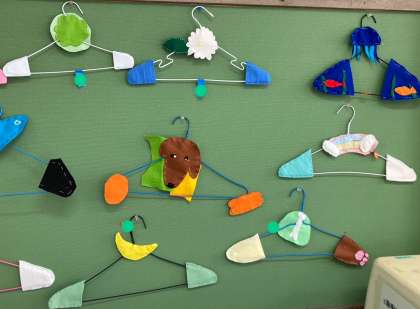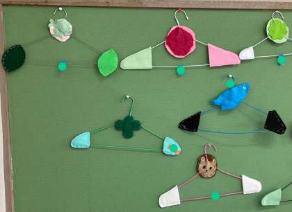 7/8 5年 家庭科 ひと針に心を込めて 公開日 2022/07/13 更新日 2022/07/13 今日のできごと 一学期に習ったことをいかしてタオルかけハンガー作りにチャレンジしています。 さすが五年生!どの子の作品も個性が光っています。自由な発想で楽しみながら取り組んでいます。 ハンガーやフェルトなど、材料のご準備をありがとうございます。