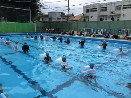 今日は5・6時間目を使って着衣泳の学習をしました。