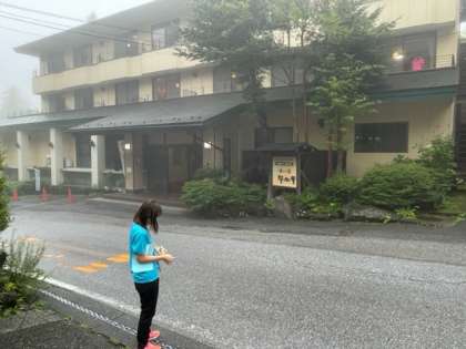 おはようございます。 2日目朝です。霧の中の朝会で始まりました。