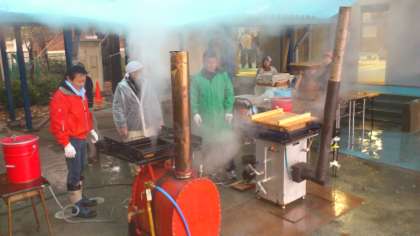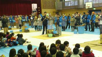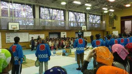 12/3 もちつき大会 その1 公開日 2011/12/03 更新日 2011/12/03 特色ある活動・取り組み 予報通りのあいにくの雨ですが、事前に対策を練り、体育館でもちつき大会を実施いたしました。 朝早くから、地域の方々をはじめ、おや児の会や保護者の皆さまが集まり、どんどんと準備がされました。 はじめの会は、全校児童が体育館に入ることが難しいので、1年生が、代表で参加して放送で行いました。