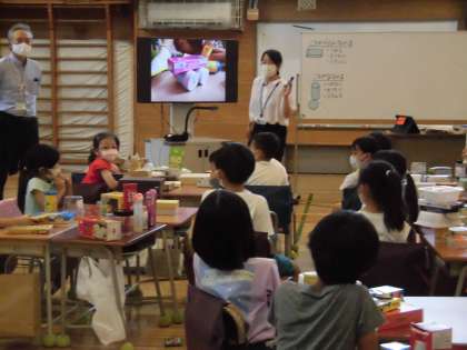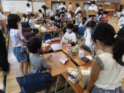 9/14 1年生 校内授業研究 算数 公開日 2022/09/15 更新日 2022/09/15 学年 今日の5時間目は校内授業研究・算数「かたちあそび」。家から持ち寄ったたくさんの、そしていろいろな形の箱を、「かたちでなかまわけ」する学習課題に挑戦しました。仲間分けをするのが難しい箱もありましたが、子どもたちはとても楽しそうに「これとこれは仲間じゃない?」「これとこれは転がるから…」等々、夢中になって活動していました。子どもたちの頑張る姿が輝いていた1時間でした。