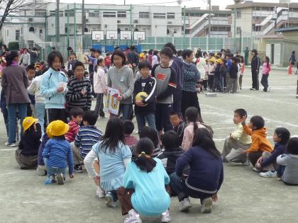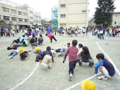 1/20 さすが6年生・なかよしタイム 公開日 2009/01/20 更新日 2009/01/20 校長室より さすがに6年生です。日差しがかげって寒々しい校庭が、子どもたちの歓声と笑顔で溢れていました。 後、残り45日の学校生活をより充実した活動ででしめくくる努力をしています。1年生から6年生までの縦割り集団での遊びも残りわずか。5年生は、6年生をよーく見つめてその大きさに触れています。 これからの一日一日が大切です。どの学年も進級の準備に入りました。