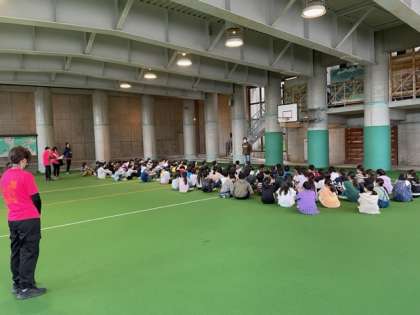 避難訓練です。 大事な事です。先生から指導が入ります。