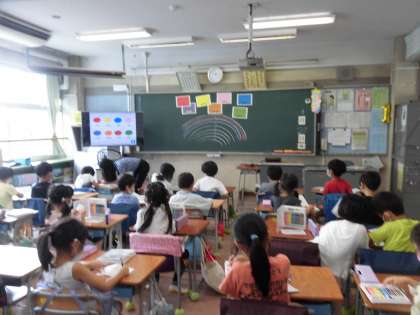 9/27 1年生 ALT 公開日 2022/09/27 更新日 2022/09/27 学年 今日のALTは「Colors」。red、pink、blue…等、色を表す英単語を発音しながら教室の中の色探しゲームをしたり、”Rainbow song”を振り付きで歌ったり。最後のactivityでは、「What's colors?」の問いに答えながら虹の塗り絵を完成させていました。次回も楽しみですね♪