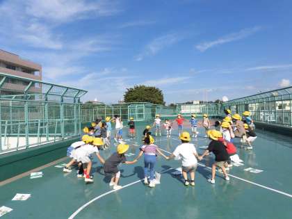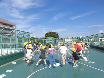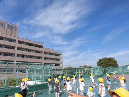 10/4 1年生 国語 「くじらぐも」 公開日 2022/10/04 更新日 2022/10/04 学年 教科書も下巻に入り、今「くじらぐも」の学習をしています。今日は気分を変えて、屋上で授業です。「1年2組」…を自分のクラスに読み替えて、演技をしながら「天までとどけ、123!」と、みんなでジャンプしました。雲を指さしながら、「あれ、くじらぐもじゃない!」「あっちの雲だよ!」と、きれいな秋空を見上げて、楽しく音読することができました。子ども達、くじらぐもの上でどんな歌♪を歌ったと思いますか?