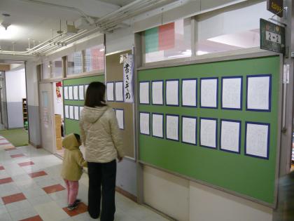 書き初め展が始まりました。各教室の廊下に整然と作品が掲示されています。1,2年生は硬筆、3年生以上は毛筆です。先日様子をお伝えした書き初め大会などで仕上げた作品の中から一番上手に書けたものを先生と相談して決めたり、自分で選んだりして掲示してあります。展覧会が近いので学校公開週間ではありませんが、どうぞいつでもお立ち寄りください。1月31日(木)まで。