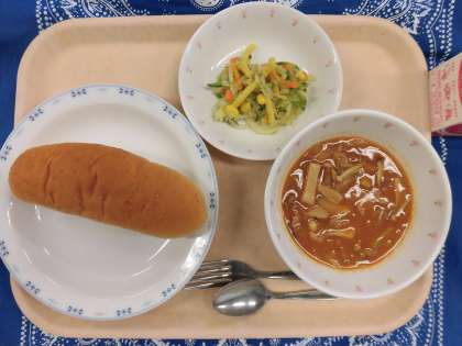 10/27 本日の給食 公開日 2022/10/27 更新日 2022/10/27 給食 〜今日の献立〜 セサミパン 牛乳 きのこのストロガノフ マカロニサラダ 〜給食メモ〜 今日は、今が旬のきのこを使って、「きのこのストロガノフ」を作りました。そこでクイズです。今日のきのこのストロガノフには、何種類のきのこを使ったでしょうか? 1. 1種類 2. 2種類 3. 3種類 ※クイズのこたえは、「食材がとれたところ…」の最後にのせています。 食材がとれたところ・・・ 閉じる 食材がとれたところ… 豚肉…秋田県 ホールコーン…北海道 たまねぎ…北海道 えのき…長野県 エリンギ…長野県 キャベツ…茨城県 きゅうり…埼玉県 にんじん…北海道 クイズのこたえは、3の「3種類」です。マッシュルーム、えのきたけ、エリンギを使いました。きのこには、おなかの中をきれいにしてくれる食物繊維がたくさん入っています。残さず食べましょう。