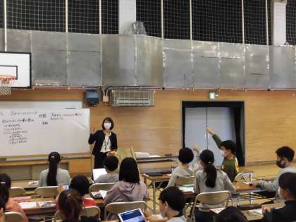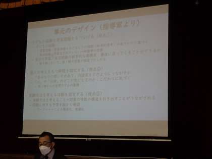 藤江先生からは、単元のデザインとして3つの視点を基にお話しくださいました。タブレットを活用した授業方法や児童同士が考えを練り上げ、吟味していくことの効果について等の多くのご指導をいただきました。