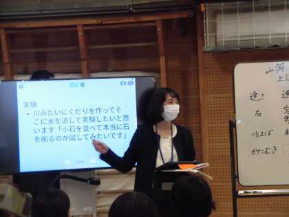 今日は東京大学大学院教授 藤江康彦先生を講師にお迎えし、5年1組の研究授業「流れる水のはたらき」を行いました。