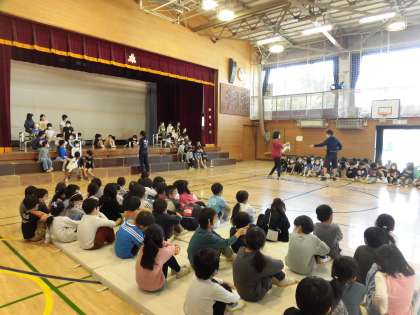 今週から学芸会の取組が本格的にスタートしました。今日の1年生は体育館で立ち位置の確認とその練習をしました。自分の場所をすぐに覚えて、スムーズに移動できた1年生、本当に素晴らしかったです!