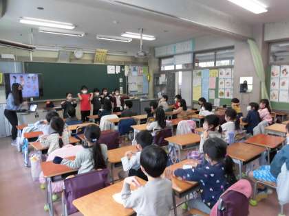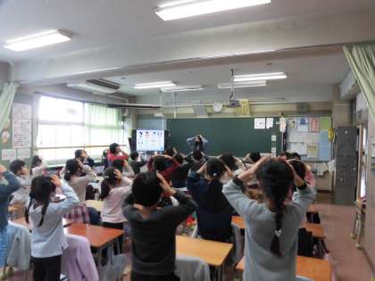 今日のALTの時間は”Body parts”。Head、shoulders…等々、体の各部の名称を英語で発音したり体で表現したりしながら、楽しく学習することができました。”Head、shoulders、Knees…”♪の歌を歌ったり、日本でいう”福笑い”のようなゲームをしたり、笑い声がたくさん聞こえた5時間目でした。