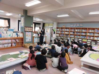 司書さんによるいつもの本の読み聞かせ、今日は『わゴムはどのくらいのびるかしら』でした。2学期も本当にありがとうございました!