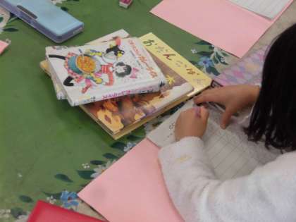 今日から冬休みの図書の貸し出しがスタートしました。「何冊借りた?」「図書バッグがすごく重〜い!でも絶対全部今日持って帰る!」等々、みんな夢中になって本を借りていました!もう既に「読書カード」の枚数が8枚を超える児童もいて…本が大好きな1年生です。