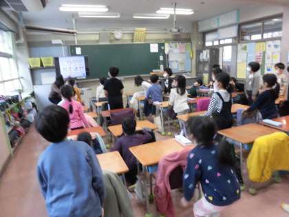 今日のALTは「Actions」。2学期最後のALTでした。カードを見ながら”Run””Read””Fly”等の英単語を発音したり、ゼスチャーゲームをしたりしました。最後にMatching Game(いわゆる神経衰弱に似たカードゲーム)で大いに盛り上がりました♪