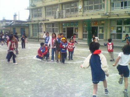 1/22 なかよしタイム 公開日 2008/01/22 更新日 2008/01/22 特色ある活動・取り組み 今日は朝から寒い日でしたが、昼休みには「なかよしタイム」がありました。 下級生をリードすることにかなり慣れてきた6年生は、今までやった遊びの中から、よかったものを選んだり、さらにバーションアップしたりした遊びを準備してくれました。 気温は低かったものの、お日さまも少し出てきて、みんなで気持ちよく遊ぶことができました。