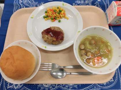 12/15 本日の給食 公開日 2022/12/15 更新日 2022/12/15 給食 〜今日の献立〜 丸パン 牛乳 アップルチーズハンバーグ ベジタブルソテー 野菜のカレースープ 〜給食メモ〜 今日は、「ハンバーグ」のクイズを出したいと思います。「ハンバーグ」の名前の由来は、次のうちのどれでしょうか? 1.シェフの名前 2.お店の名前 3.都市の名前 ※クイズのこたえは、「食材がとれたところ…」の最後にのせています。 食材がとれたところ・・・ 閉じる 食材がとれたところ… 豚肉…青森県 たまねぎ…北海道 にんじん…千葉県 セロリー…静岡県 キャベツ…愛知県 りんご…山形県 クイズのこたえは、3の「都市の名前」です。ドイツの都市の名前「ハンブルク」が変化して、「ハンバーグ」と呼ばれるようになったそうです。今日のハンバーグには、旬のりんごや、カルシウムたっぷりのチーズも入っています。残さず食べましょう。