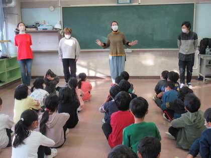 13日(火)・14日(水)に世田谷パブリックシアターの講師の皆様をお招きして、ワークショップの授業をしました。全身じゃんけんやだるまさんがころんだ、友だちと協力して一つのものを表現する活動(ラディッシュの一生)をしました。