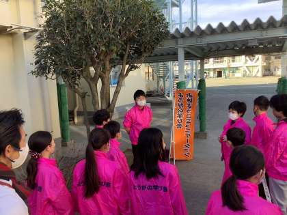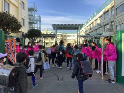 運営代表委員会の子どもたちが、朝、門に立ち、元気に挨拶をしました。