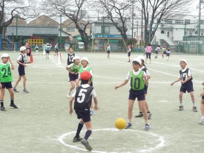 1/29 寒空を吹き飛ばす元気な体育 公開日 2009/01/29 更新日 2009/01/29 校長室より 今日は朝のうちは気温が高いような気がしましたが、曇り空で気温が上がりません。しかし、どんよりとした寒空のなかでも元気に体育の学習です。1年生は、マラソン、縄跳び,的あてドッチボールで楽しそうに運動していました。若い先生も元気に半そでです。 4時間目には4年生がサッカーと、サークルボールをやっていました。パス回しがとっても上手です。