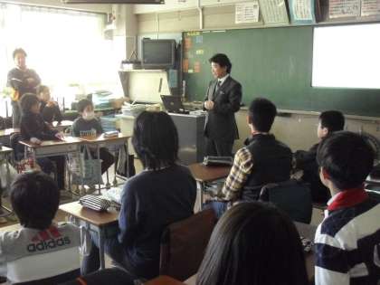 昨日の5時間目に6年1組で、東日本大震災を考えながら自然環境についての授業をしました。震災を受けてしまった、漁師一家に育った漁師さんの生き方を通しての授業です。
