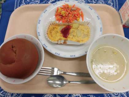 1/20 本日の給食 公開日 2023/01/20 更新日 2023/01/20 給食 〜今日の献立〜 ココアパン 牛乳 ポテトオムレツ にんじんとツナのサラダ コーンポタージュ 〜給食メモ〜 今日は、「にんじんとツナのサラダ」に使った「ツナ」のクイズを出したいと思います。ツナ缶の原料にならない魚は次のうちのどれでしょう? 1. イワシ 2. カツオ 3. マグロ ※クイズのこたえは、「食材がとれたところ…」の最後にのせています。 食材がとれたところ・・・ 閉じる 食材がとれたところ… じゃがいも…北海道 豚肉…青森県 鶏卵…青森県 たまねぎ…北海道 にんじん…千葉県 パセリ…千葉県 クイズのこたえは、1の「イワシ」です。ツナは英語でマグロ類のことをいいますが、ツナ缶にはカツオも使われています。ツナには、体をつくるもとになるたんぱく質がたくさん入っています。残さず食べましょう。