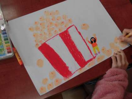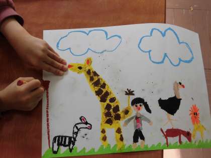 1/24 1年生 図工 「できたらいいな こんなこと」 公開日 2023/01/24 更新日 2023/01/24 学年 こんなことができたら楽しいな、ステキだな!絵の中でできる楽しいことを自由に想像して、クレパスで画用紙いっぱいに描きました。「恐竜と一緒に空を飛んでるの!」「すごく大きいケーキを描いたよ!」子どもたちの楽しい想像はどんどんふくらんでいきます。完成が楽しみです♪