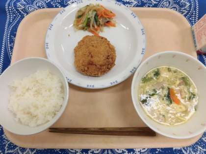 今日は、学校給食週間最終日です。今日の献立は、「東京都メニュー」です。今日は、「とびうおのメンチカツ」の「とびうお」のクイズを出したいと思います。