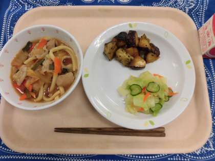 1/31 本日の給食 公開日 2023/01/31 更新日 2023/01/31 給食 〜今日の献立〜 キムチ煮込みうどん 牛乳 即席漬け 大学芋 〜給食メモ〜 今日は、「大学芋」に使った「さつまいも」のクイズを出したいと思います。私たちが食べているのは、さつまいものどの部分でしょうか? 1. 実 2. 茎 3. 根っこ ※クイズのこたえは、「食材がとれたところ…」の最後にのせています。 食材がとれたところ・・・ 閉じる 食材がとれたところ… 豚肉…青森県 にんじん…千葉県 たまねぎ…北海道 白菜…群馬県 にら…栃木県 キャベツ…愛知県 きゅうり…宮崎県 しょうが…高知県 さつまいも…千葉県 クイズのこたえは、3の「根っこ」です。芋には、さつまいものように根っこの部分を食べるものや、じゃがいものように茎の部分を食べるものがあります。さつまいもには、かぜを予防してくれるビタミンCや、おなかの中をきれいにしてくれる食物繊維がたくさん入っています。残さず食べましょう。