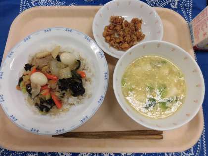 今日は、「大豆とじゃこの甘辛揚げ」に使った「大豆」のクイズを出したいと思います。大豆は、たんぱく質がたくさん入っていることから、「畑の○○」と呼ばれています。さて、畑の何と呼ばれているでしょうか?