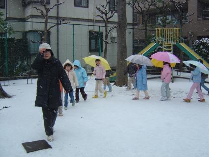 子どもたちは、朝からわくわく・・・。本格的に降る初めての雪です。