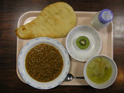 今日の給食は、“ナン”と“キーマカレー”です。