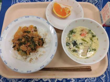 今日は、「豚キムチ丼」に使った「にら」のクイズを出したいと思います。にらに入っている「アリシン」には、ある栄養素の吸収をよくしてくるはたらきがあります。さて、その栄養素とは、次のうちのどれでしょうか?