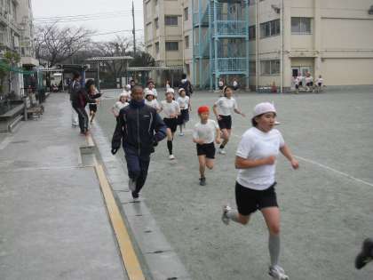 2/14 日体大駅伝選手と走ろうー2 公開日 2012/02/14 更新日 2012/02/14 校長室より クラスの大声援の中、駅伝選手も一緒に走ってくれたので、子どもたちは大興奮です。冷たい雨が降る天候の中でしたが、多くの子どもたちが自己新記録をだしました。