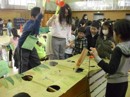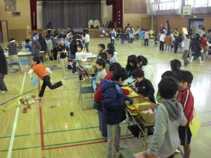 今日は、2年生と4年生の異学年交流がありました。4年生が2年生を楽しませようと準備を重ねてきました。もぐらたたき、ストラックアウトなど、どの遊びも工夫されていて2年生は大喜びです。元気いっぱいの声で、2年生のお客さんを呼び込む姿や、ゲームのやり方を親切ていねいに教えてあげている姿が多く見られ嬉しく思いました。とっても活気のある体育館で、いつもやさしい4年生が、さらにやさしさを増した心温まる時間となっていました。4年生ありがとう。
