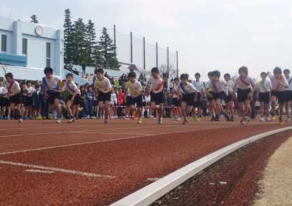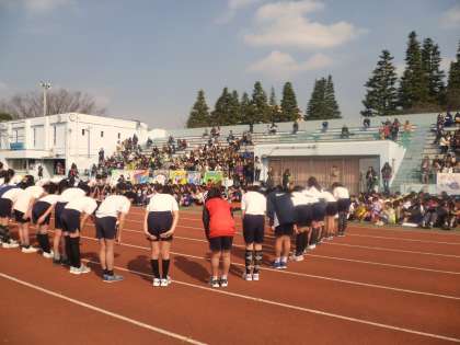 総合運動場スタンドいっぱいの保護者の方々の応援に励まされて駅伝大会がスタートしました。