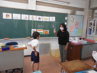 英語によるたくさんのあいさつを学びました。英語によるあいさつは、顔の表情や身体を使って表すことが多いです。あいさつと同時に文化の違いも学ぶことができました。次回が楽しみです。