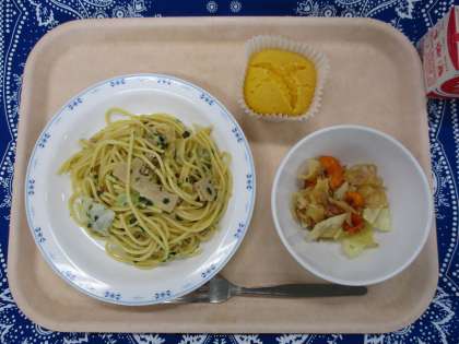 5/17 本日の給食 公開日 2023/05/17 更新日 2023/05/17 給食 春キャベツとたけのこのスパゲティ 牛乳 野菜チップス キャロットケーキ 主な食材と産地 豚ひき肉 青森県 たまご 青森県 じゃがいも 鹿児島県 にんにく 青森県 たまねぎ 兵庫県 きゃべつ 茨城県 万能ねぎ 福岡県 れんこん 茨城県 ごぼう 青森県 にんじん 徳島県