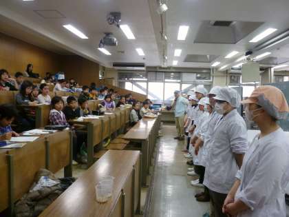 大学の実習室で仕込みの手伝いをしてくださった先生方や、学生さん方に感謝の心を込めてお礼を言いました。 ありがとうございました。